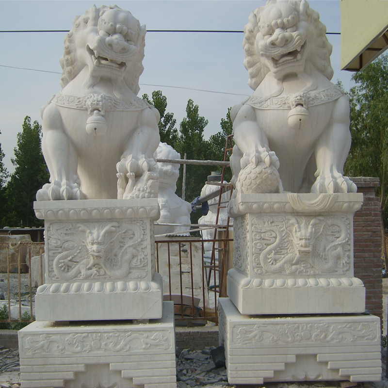 China White Marble Lion Standing Stone outdoor for sale