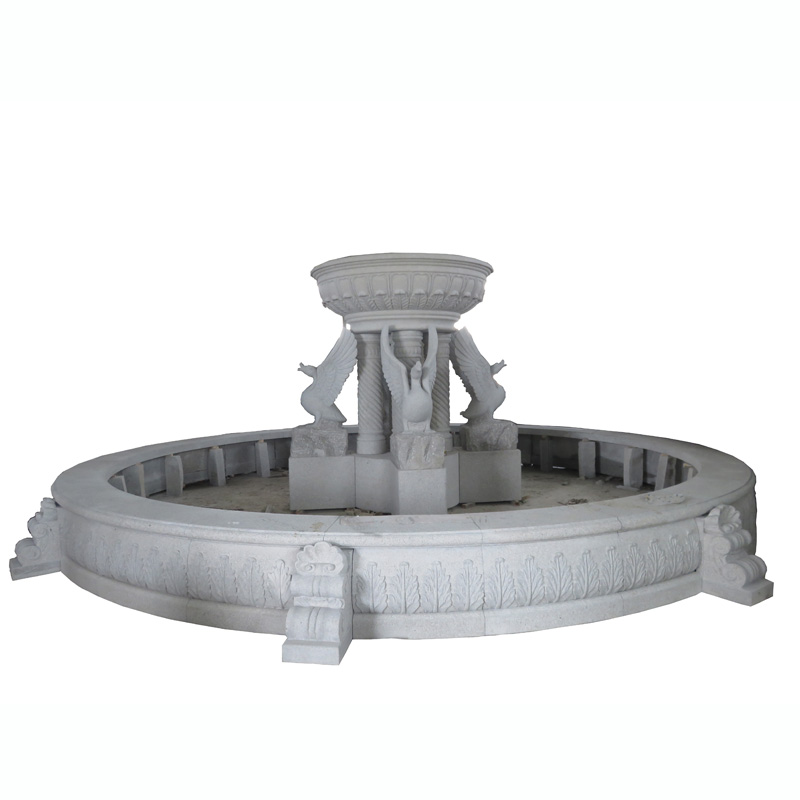 The swans sculpture foutaion is made in Chinese light grey granite, with a bush hammered surface finished. The rough surface makes the color looks much more unique. Many other animal carving can be offered also, contact us for more details.
