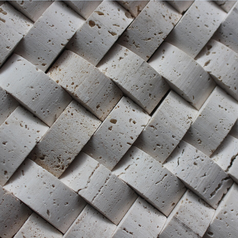 White 3d travertine mosaic tiles in wave shape, three-dimensional mosaic tile. Each natural stone is unique, and some display more variations from piece to piece. So Color and Veining Variations are normal for natural stone products.